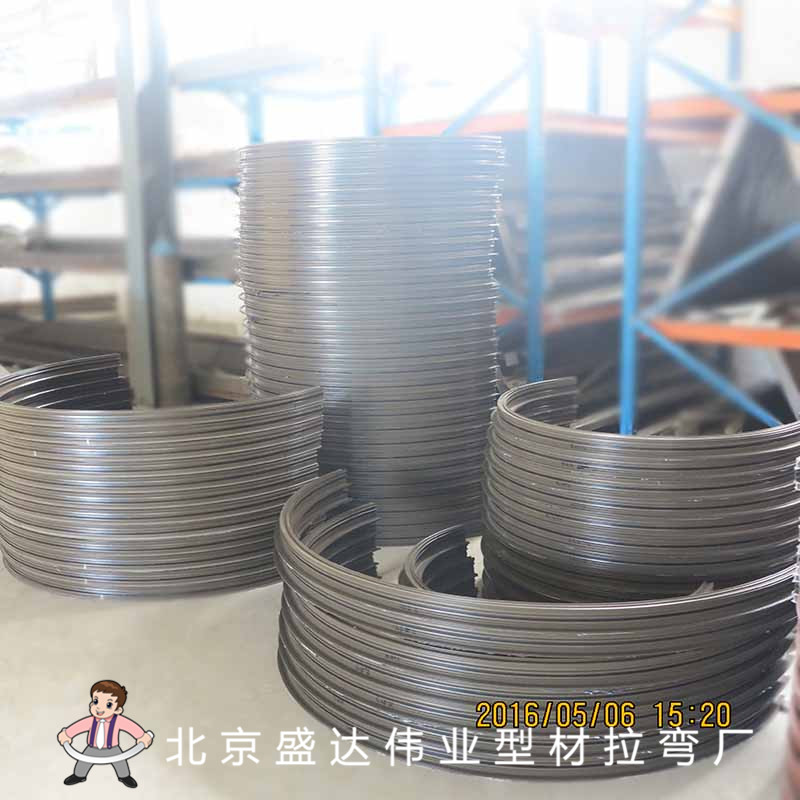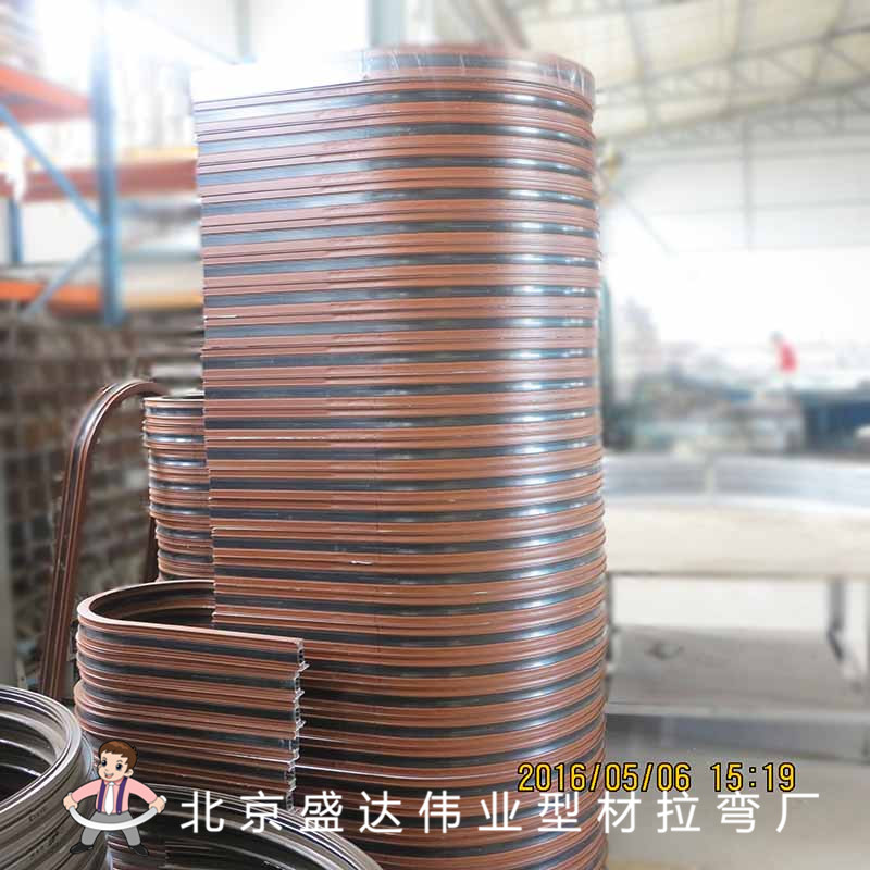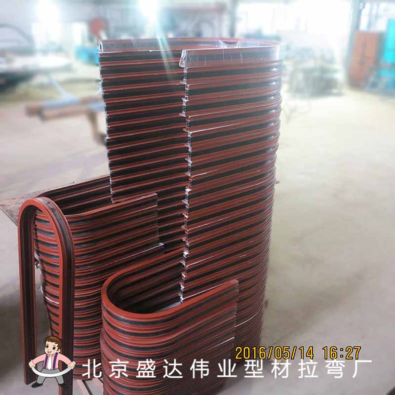 2、 北京盛達偉業型材拉彎廠在十余年的工作經驗中,深入研究,逐步探索,對機械設備和工裝夾具進行了全面的改造和升級,使斷橋鋁型材的最小彎弧半徑達到了R=260mm,而且專研完成了斷橋鋁型材半圓形彎弧部分與兩端直線段部分的一體化加工,使得整體窗型(門型)工藝簡化,造型美觀大氣,效率提升,質量一流,精度準確,技術尖端,增加點成本,提升了效率和美觀度.   獲得了客戶的廣泛好評。